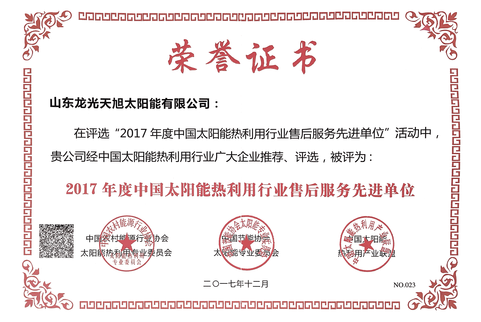 • 2017年度中国太阳能热利用行业售后服务先进单位
