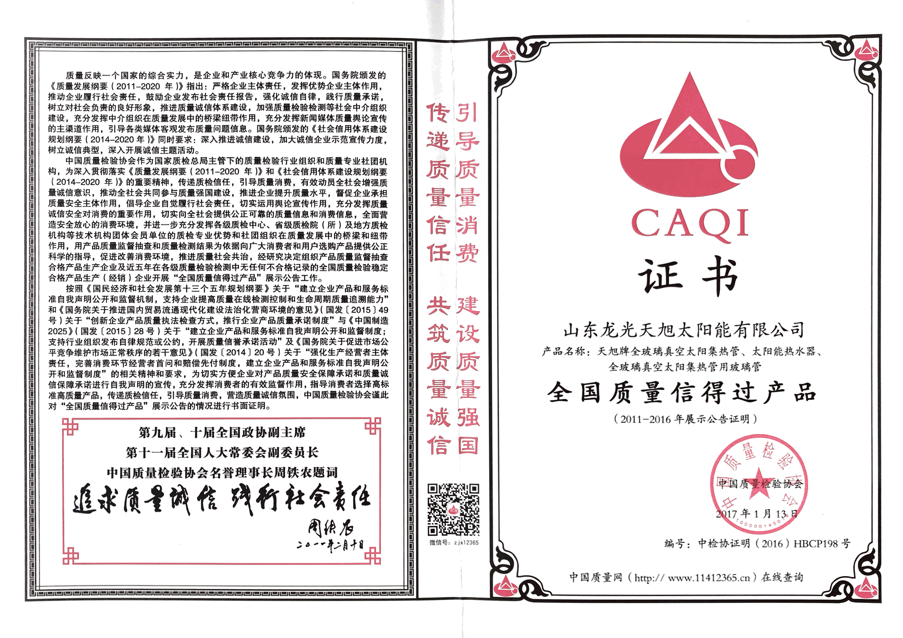 • 全国太阳能光热行业质量领先品牌